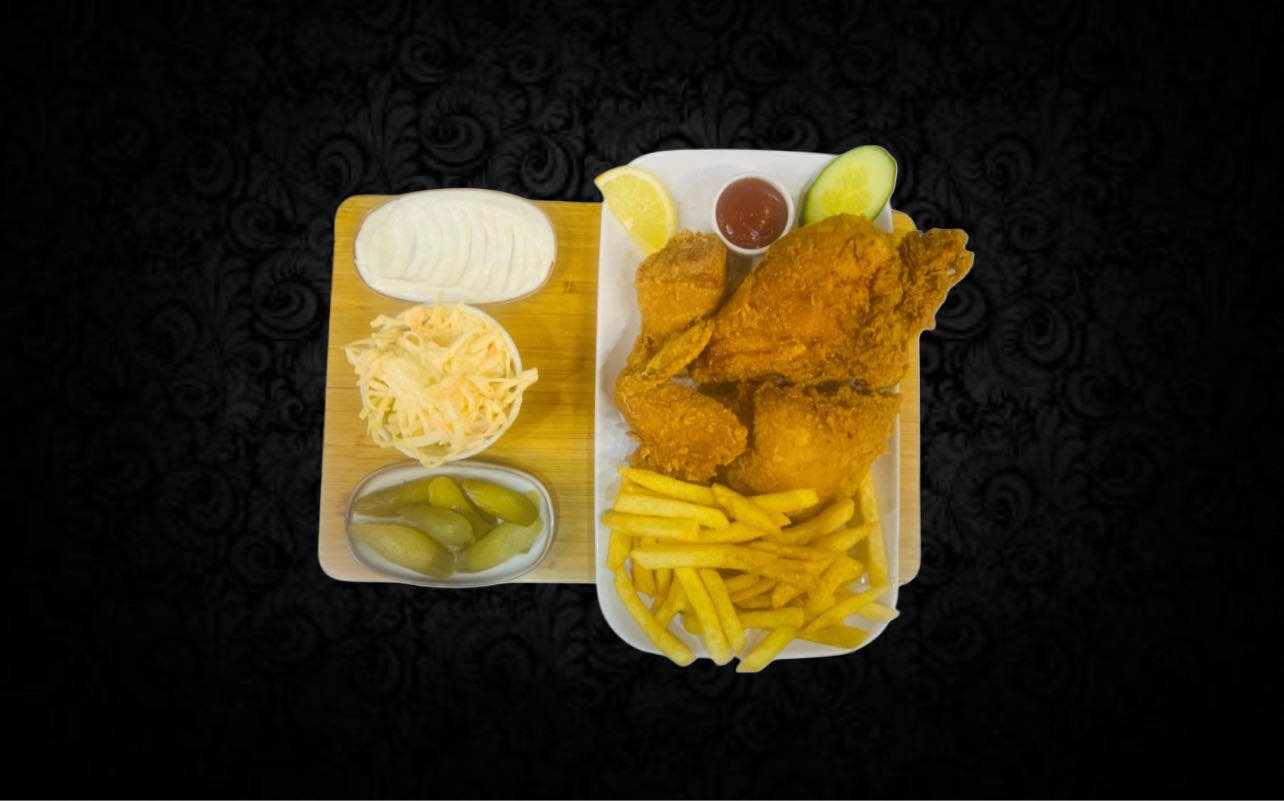 Halv kylling, sprødstegt og saftig.